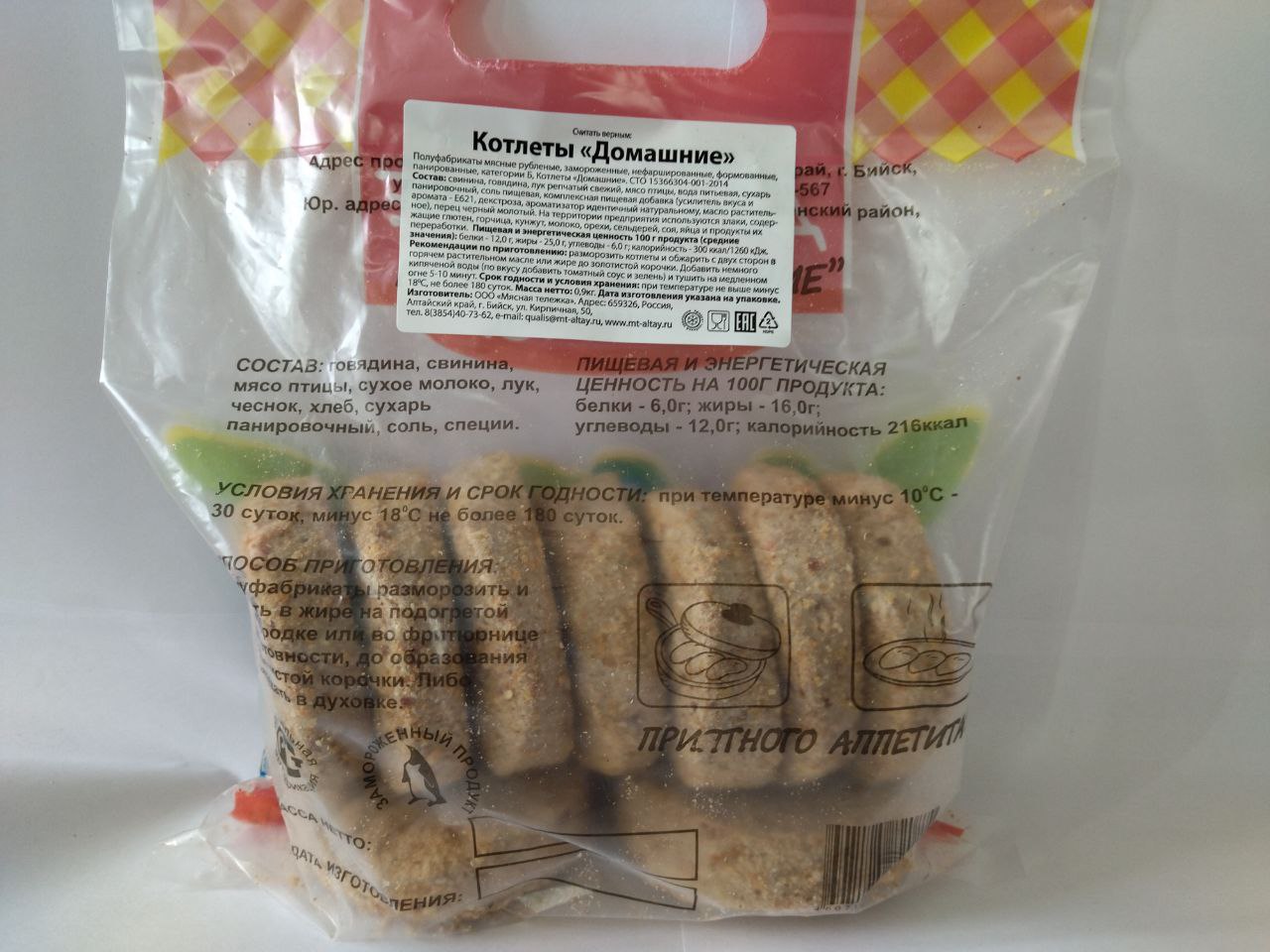 Котлеты Домашние 0,9кг /10 шт Мясная тележка