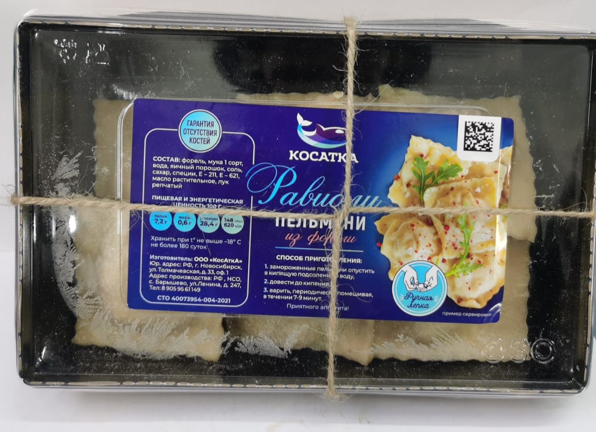 Пельмени РАВИОЛИ из форели НОВИНКА!!! Пельмени"Равиоли" из форели 1 уа 400гр Косатка 1кг /962 Р в наличии 5 уп по 400гр